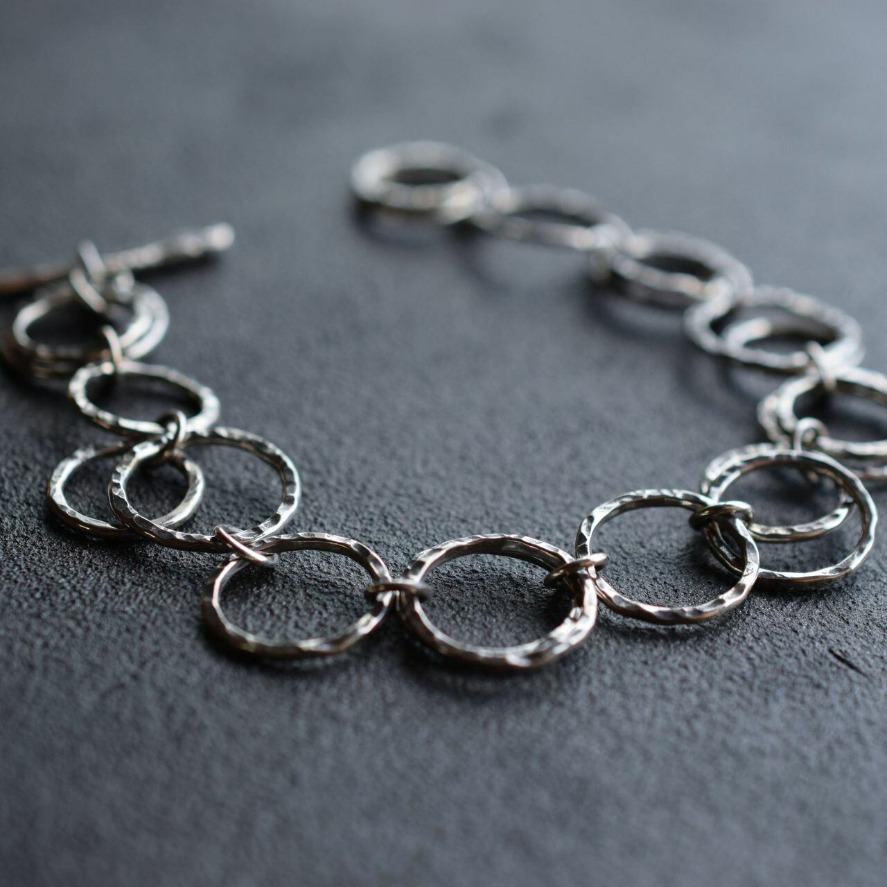 海中に上がっていくバブルリングのようなハンドメイドのチェーンブレスレット。